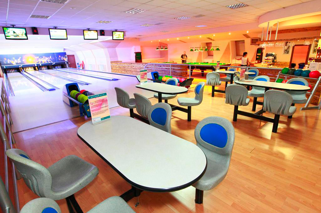 Это развлечение, предоставленное на базе отеля, имеет универсальный характер, так как подходит для отдыха всей семьи. Автоматизированная линия установки кегль, четыре дорожки, электронное табло для мониторинга счета делают игру легкой и не напрягающей. Тут же располагается кафе, где все желающие смогут отведать прохладительные и слабоалкогольные напитки, легкие горячие и холодные закуски, десерты и блюда из снек-меню. Удобные стулья располагают к отдыху после насыщенной игры.