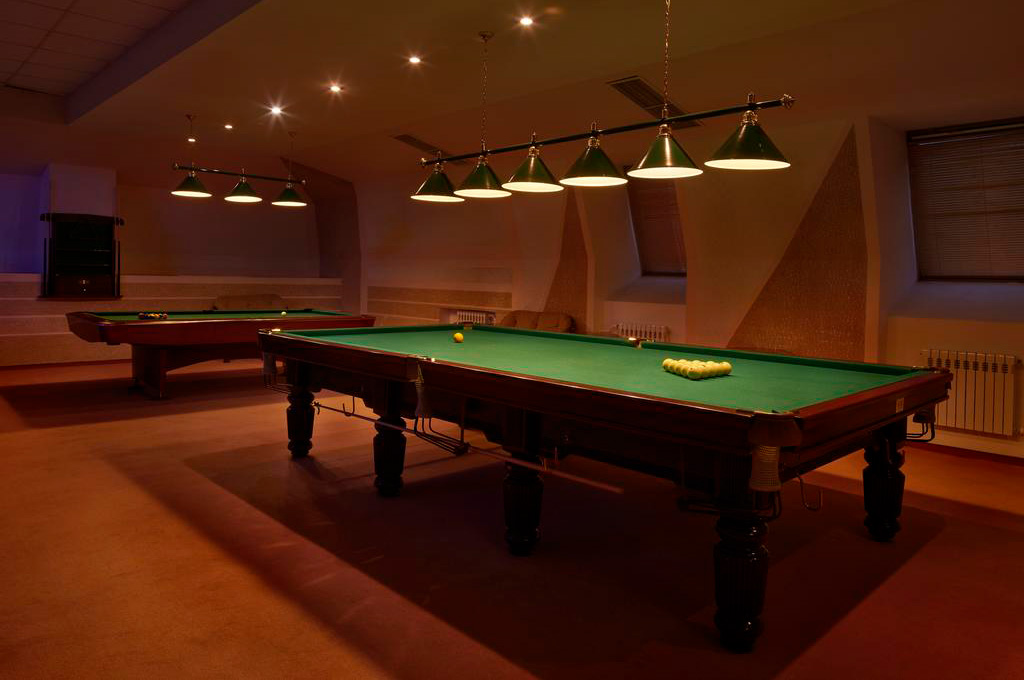Помещение бильярдного зала оборудовано столами, на которых можно сыграть в американский пул и русский бильярд. Для этого имеются оборудованные столы, источники дополнительного искусственного света и требуемая фурнитура. Рядом есть комфортные столики для отдыха. А также это излюбленное место всех болельщиков. Сюда можно заказать закуски, напитки и меню из снек-бара. В этом же зале проводятся соревнования по настольным играм: нардам, шашкам, шахматам, домино.