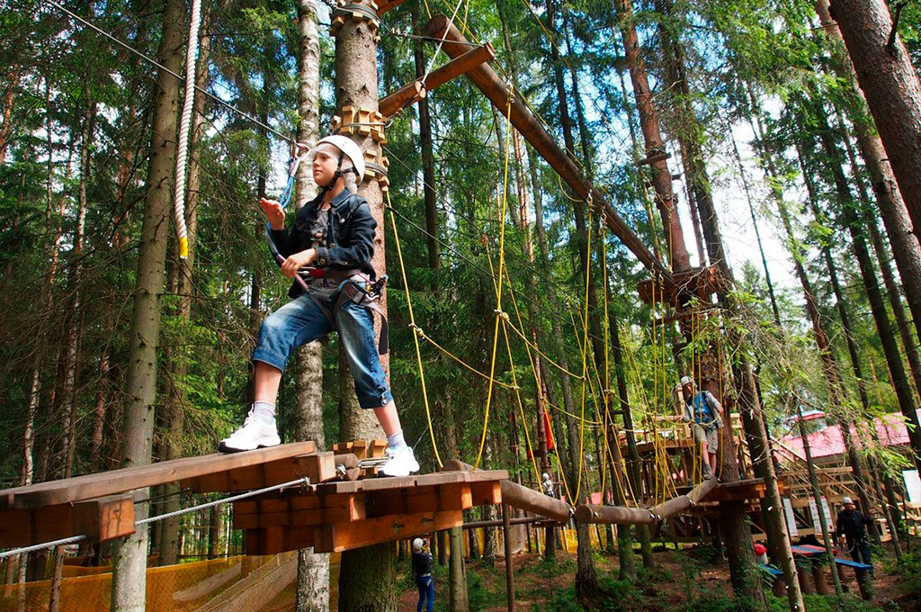 Особым видом досуга станет посещение веревочного парка. Эта интересная забава подразумевает прохождение по узким тропам с веревками и деревянными рейками, расположенными в хаотичном порядке. Все снаряжение крепится прямо на кронах высоких деревьев. Не стоит переживать за безопасность, поскольку прогулка по парку осуществляется только со страховкой, а на земле мягкая лесная почва. Это идеальный формат развлечений для команд из 30-60 человек или семейного отдыха.